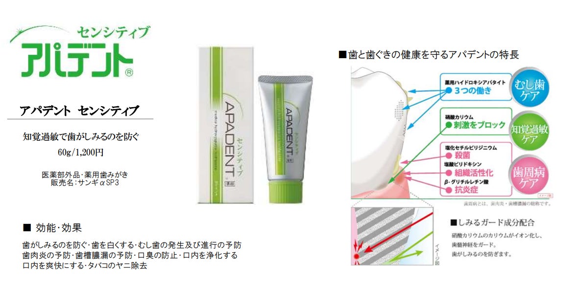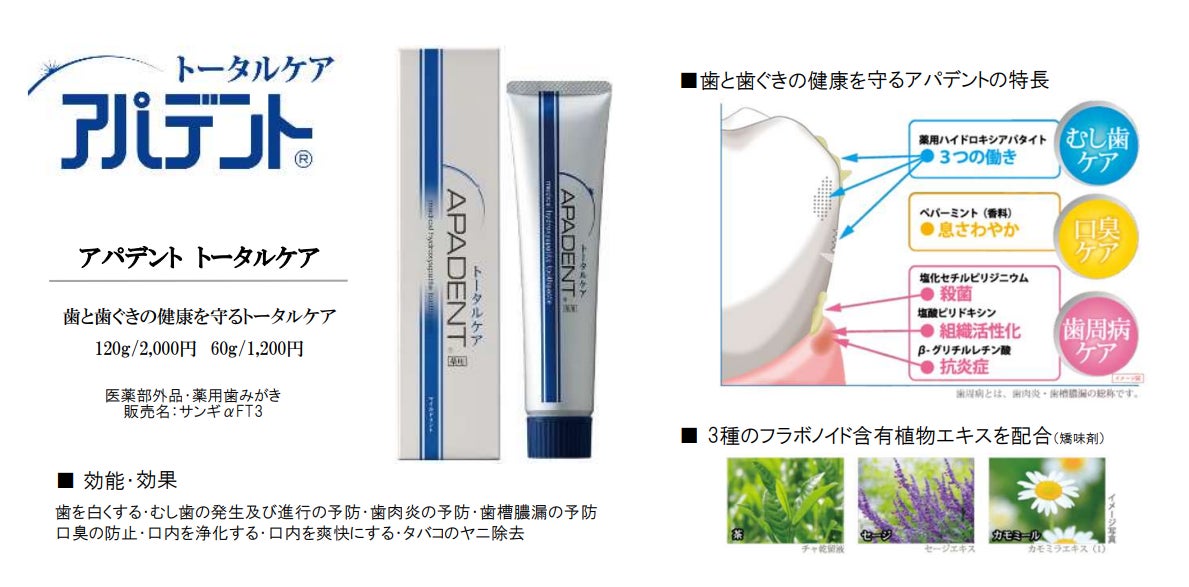 - サンギ開発のむし歯予防成分「薬用ハイドロキシアパタイト」