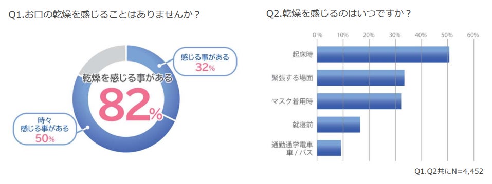 2021年9月に自社調査したお口の乾燥についてのアンケートでは、「乾燥を感じることがある」が8割以上の結果となり、お口をうるおしたいニーズがあることがわかりました。