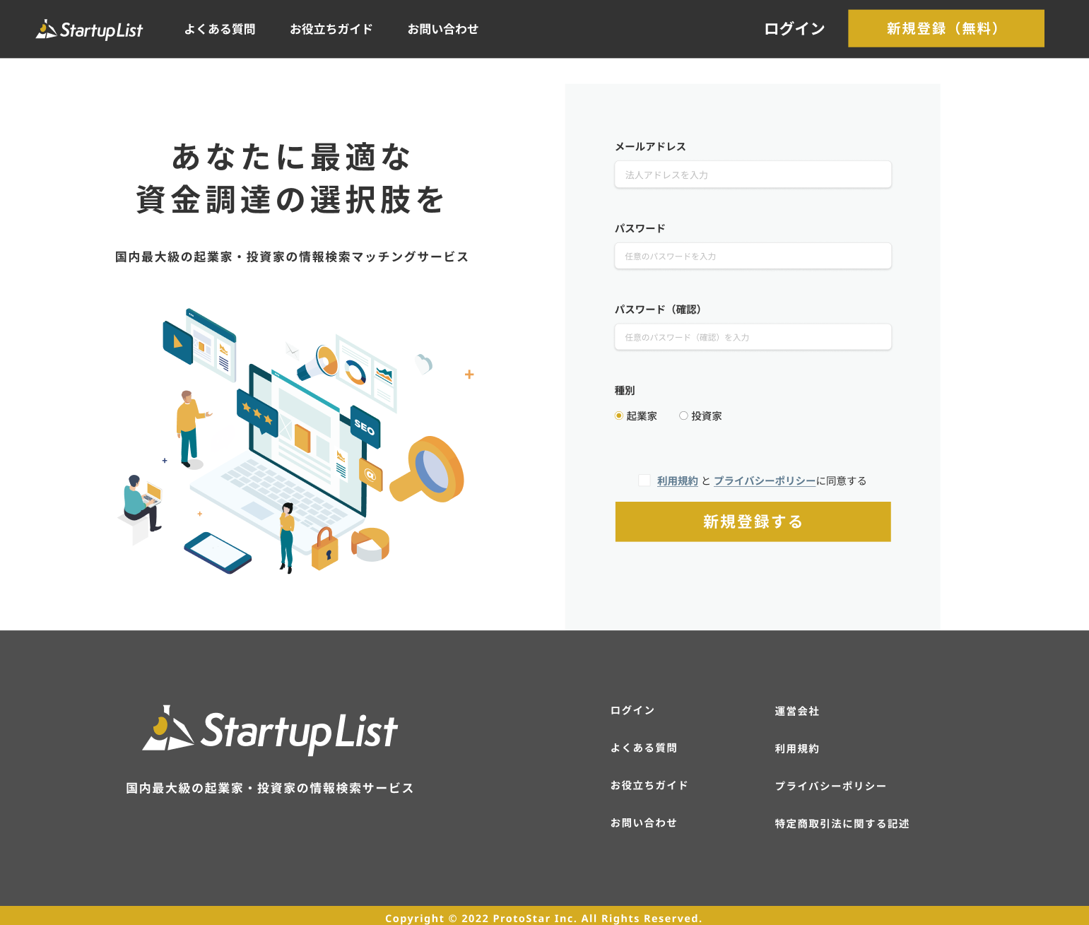 約1万社のスタートアップのネットワークを保有するプロトスター株式会社(本社:東京都中央区、代表取締役社長:前川英麿、以下プロトスター)は、2月1日(水)に、当社が展開する国内最大級の起業家・投資家マッチングサービス「StartupList(スタートアップリスト)」(サイトURL:https://www.startuplist.jp/)をリニューアルいたします。