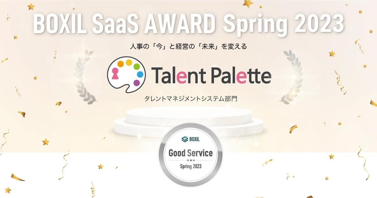 タレントパレットが「BOXIL SaaS AWARD Spring 2023」にて、口コミの総得点が高いサービスに付与される”Good Service”を前回に続き受賞