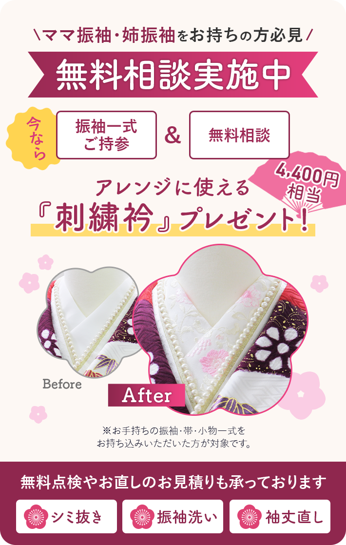 ■特別企画04 ママ振袖・姉振袖の方必見!無料相談で刺繍衿プレゼント