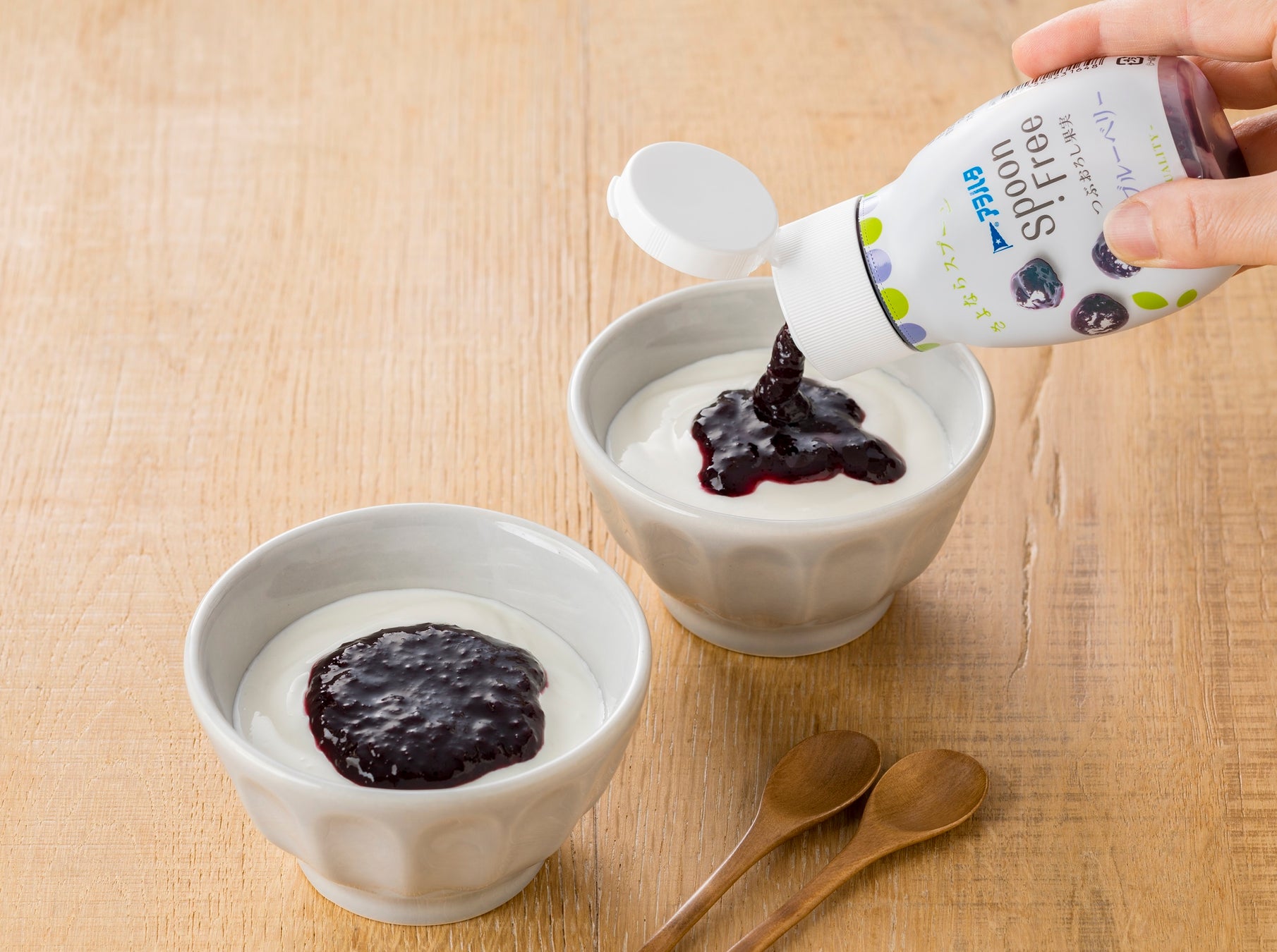 スプーンを使わずにパンに塗れる、ボトル容器に入ったフルーツスプレッドです。甘さを控えめにし、果実の食感や存在感が残るように果肉の大きさを整えました。さっと使える容器形態のため、食パンだけでなく、ヨーグルト、ドリンク、アイスクリーム、テーブルブレッドなど幅広い用途に使用できます。