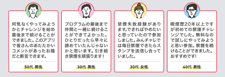 禁煙プログラムに参加した人から、ピアサポートによる禁煙継続が効果的であったという感想(※3)が寄せられました。