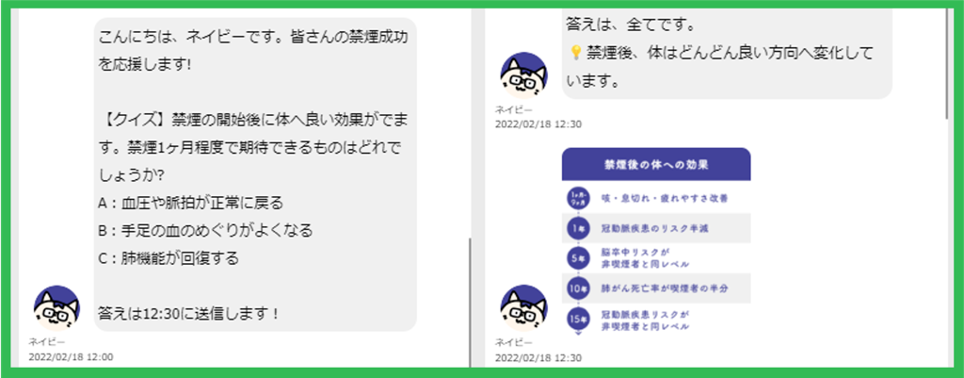 「禁煙」に関する研究の第一人者である医師 大和浩教授にプログラムを確認していただくとともに、禁煙に関する知識をクイズ形式など参加者が受け入れやすい形で提供するなどコンテンツの見直しを実施しました。