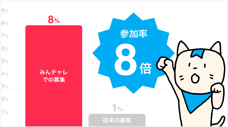 禁煙補助薬とみんチャレを活用した新しいアプローチや、マンガを活用するなど弊社独自の参加勧奨手法の効果により、参加率は従来の禁煙プログラム(※1)と比較して約8倍でした(当社調べ)。