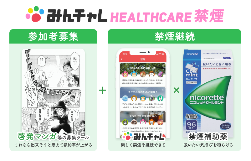 みんチャレ×禁煙補助薬で従来比20倍の参加率を実現、企業・健康保険組合向け禁煙プログラムを提供開始