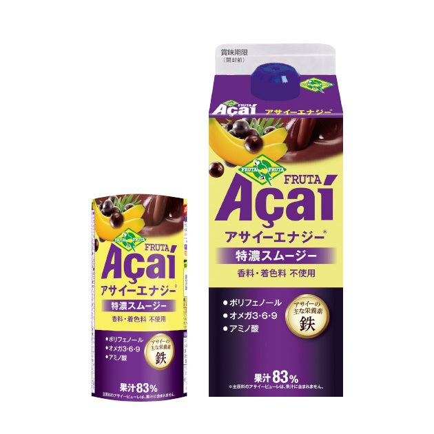 「アサイーエナジー®」は、2006年に日本初のアサイーのドリンク製品として誕生し、以来コンビニエンスストアやスーパーマーケット、量販店などで販売され、拡販にともなってアサイーの知名度向上をけん引した立役者ともいえる存在です。商品名はその名の通り、ポリフェノールや鉄分、オメガ脂肪酸などが特徴のアサイーのエナジー性を意味し、多くのアスリートやモデル、美と健康意識が高い方々に愛されてきました。