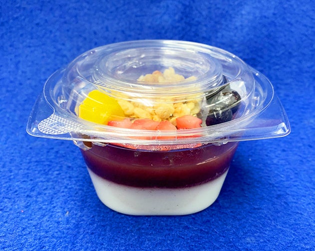 ほんのり甘い牛乳寒天の上に、鉄分やポリフェノールが特徴のアサイーベースを重ね、トッピングにフルーツとグラノーラをあしらいました。甘すぎず栄養摂取も可能な、男女年齢を問わずお勧めできるヘルシー・デザートです。