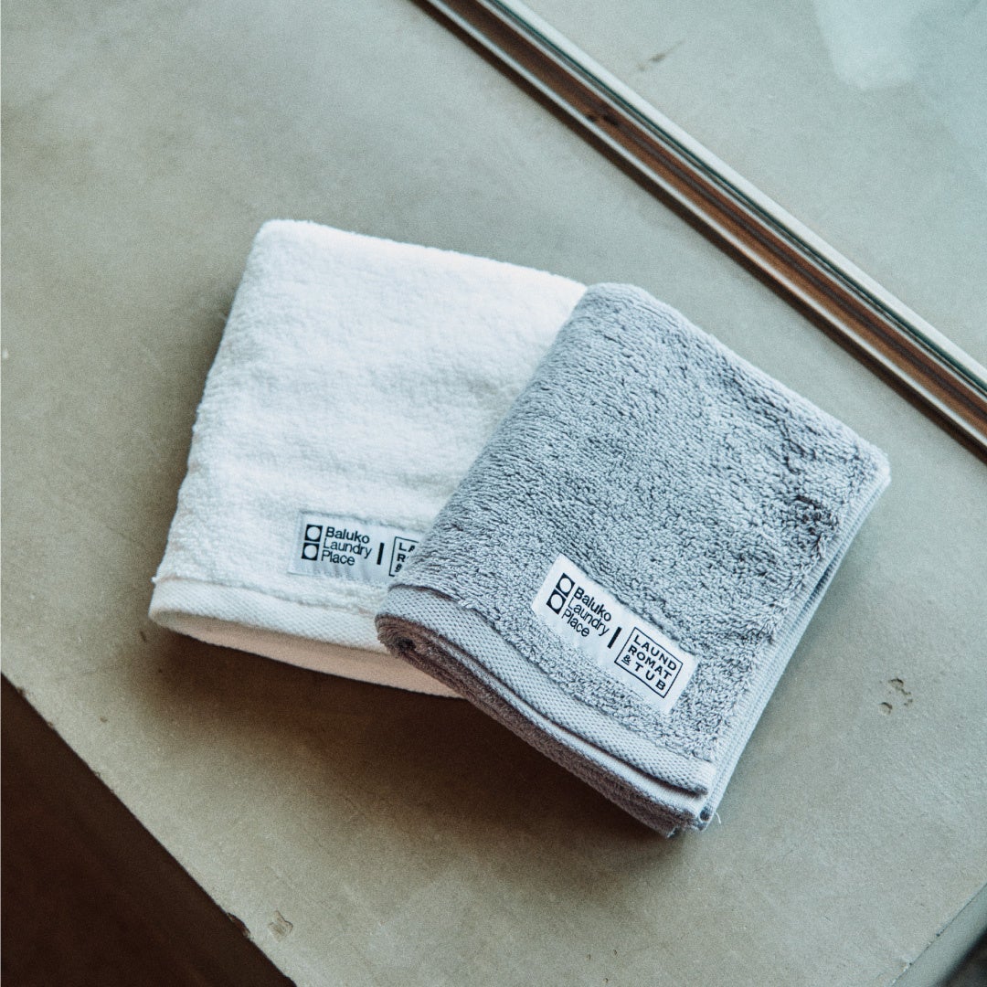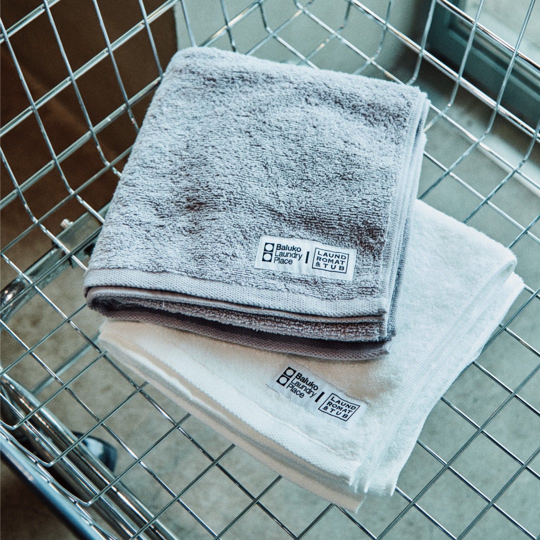 速乾機能のある素材を用いたタオルに、「LAUNDROMAT & TUB」 × Baluko Laundry Placeコラボタグをあしらいました。