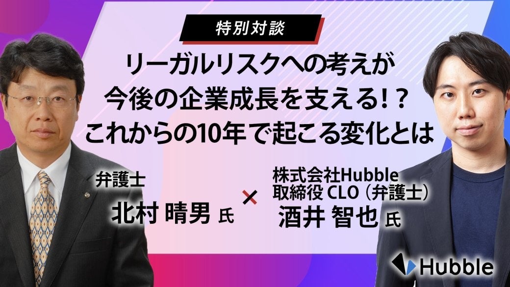 【テレビ「行列のできる法律相談所」で人気の北村弁護士が登壇決定!弊社取締役CLO酒井と特別対談】Hubble、契約書デジタル化カンファレンス2023に登壇