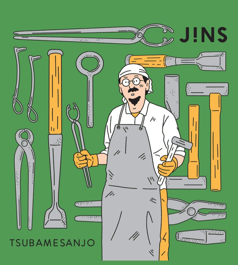 また、オープン時には、イラストレーターYunosuke氏が描き下ろしたグラフィックが店内を彩ります。刃物などの鉄製品の製造販売、修理を行う職人「鍛冶屋(かじや)」をイメージしました。