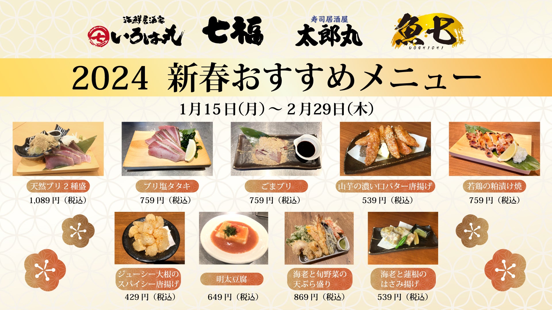 寿司居酒屋の「七福」・「いろは丸」・「太郎丸」・「魚七」2024 新春おすすめメニュー1月15日(月)より期間限定で販売開始!