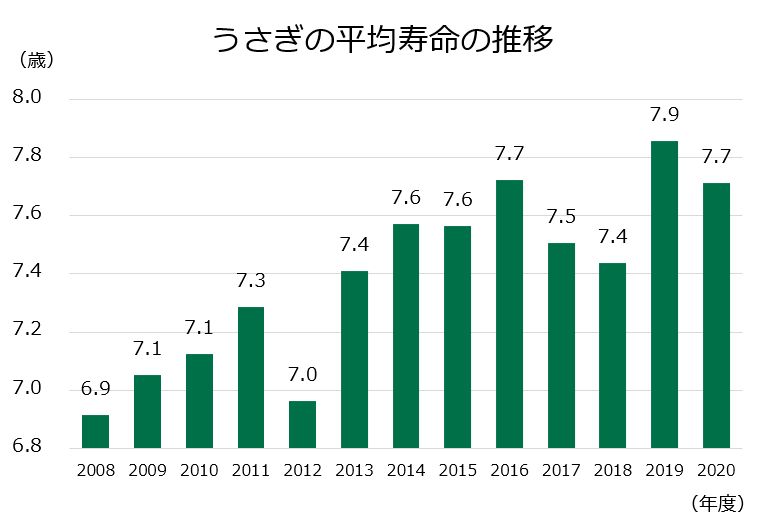 - 平均寿命は7.7歳に延伸、12歳の「年うさぎ」も