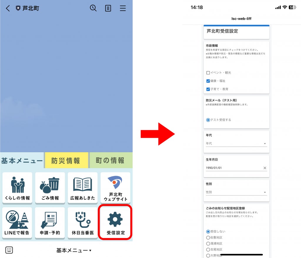 これまではLINEに登録している全ての住民に送られていた配信ですが、リニューアル後からは欲しい配信カテゴリーを選択し、欲しい情報を選ぶことが可能となりました。