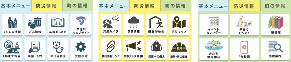 暮らしや防災など様々な情報を表示するリッチメニュー「タブ」機能