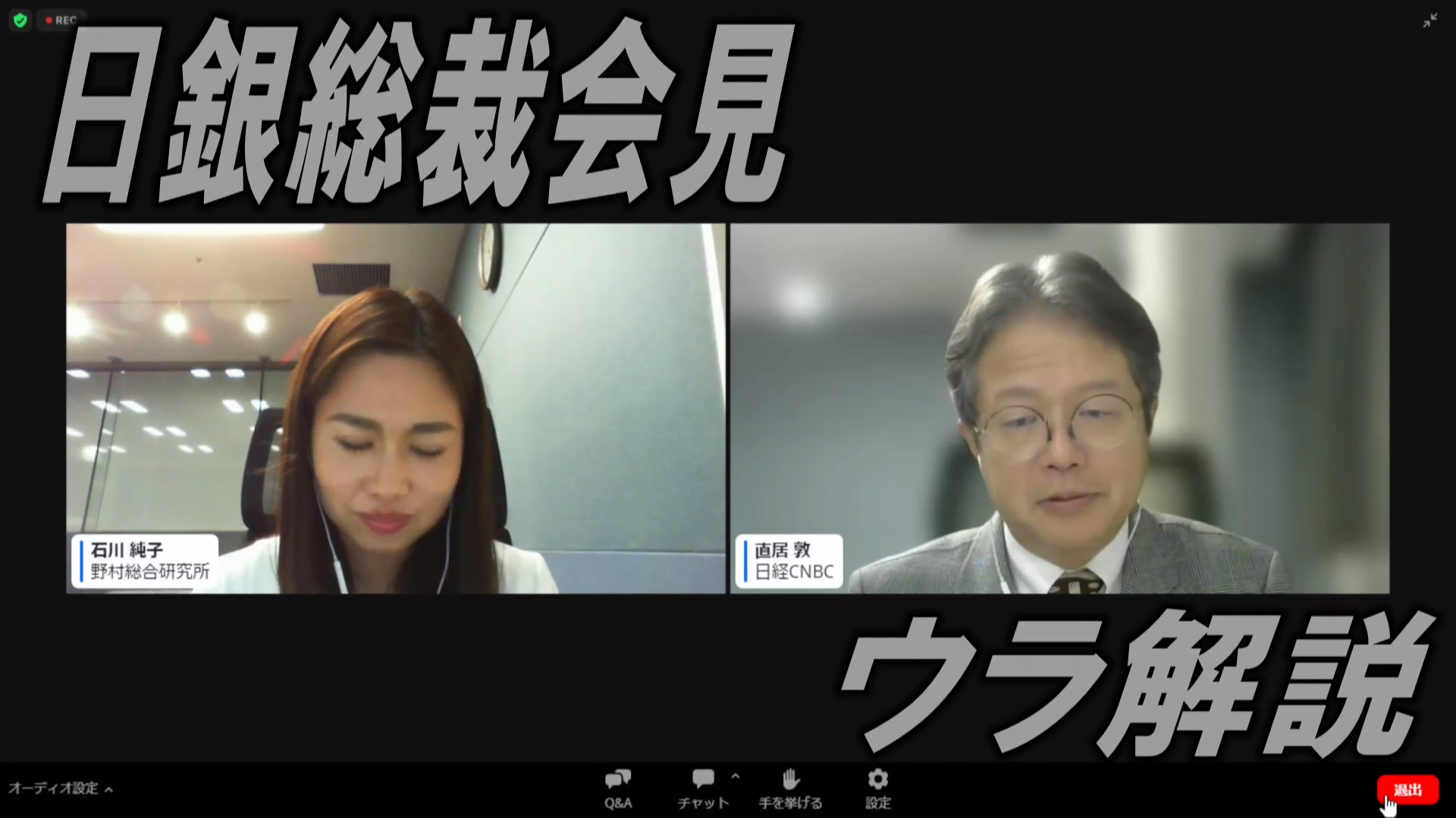 日銀・植田総裁による会見を野村総研・石川 純子氏と日経CNBC・直居敦がリアルタイム解説!日経CNBCが「LIVE!日銀総裁会見『ウラ解説』」第6回を配信