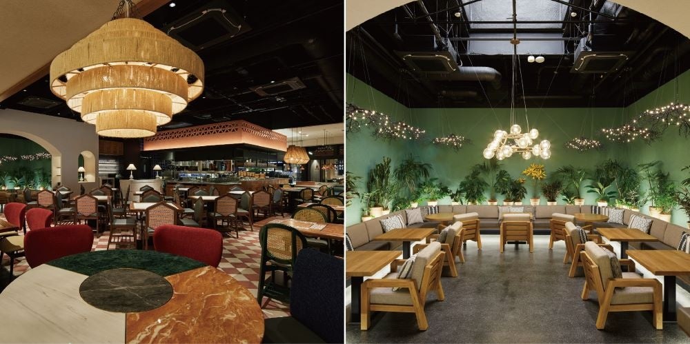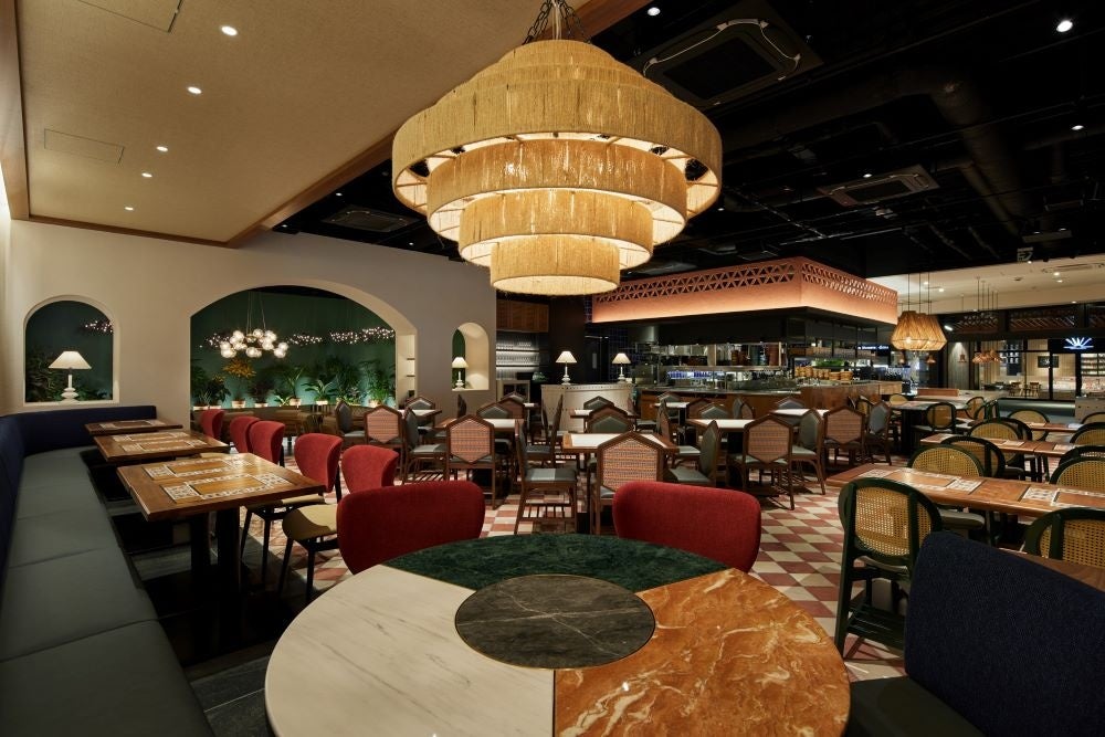 メインダイニングはアウトレット内のレストランとは思えない開放感と圧倒的なスケール!ラテンのリズムと共に一気に非日常の空間へと誘います。表情の異なる2つのダイニングは、ご家族や仲間たちと過ごす休日の楽しい時間や誕生日など特別な一日のご利用など、どんなシーンでも素敵なお時間を演出します。