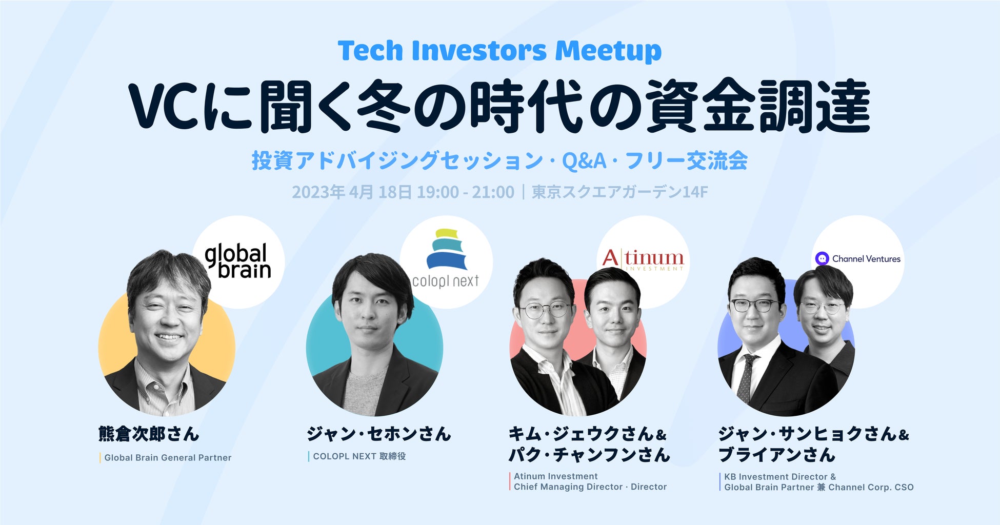 Tech Investors Meetup「VCに聞く、"冬の時代"の資金調達」をテーマにオフラインイベントを4/18(火)に開催します