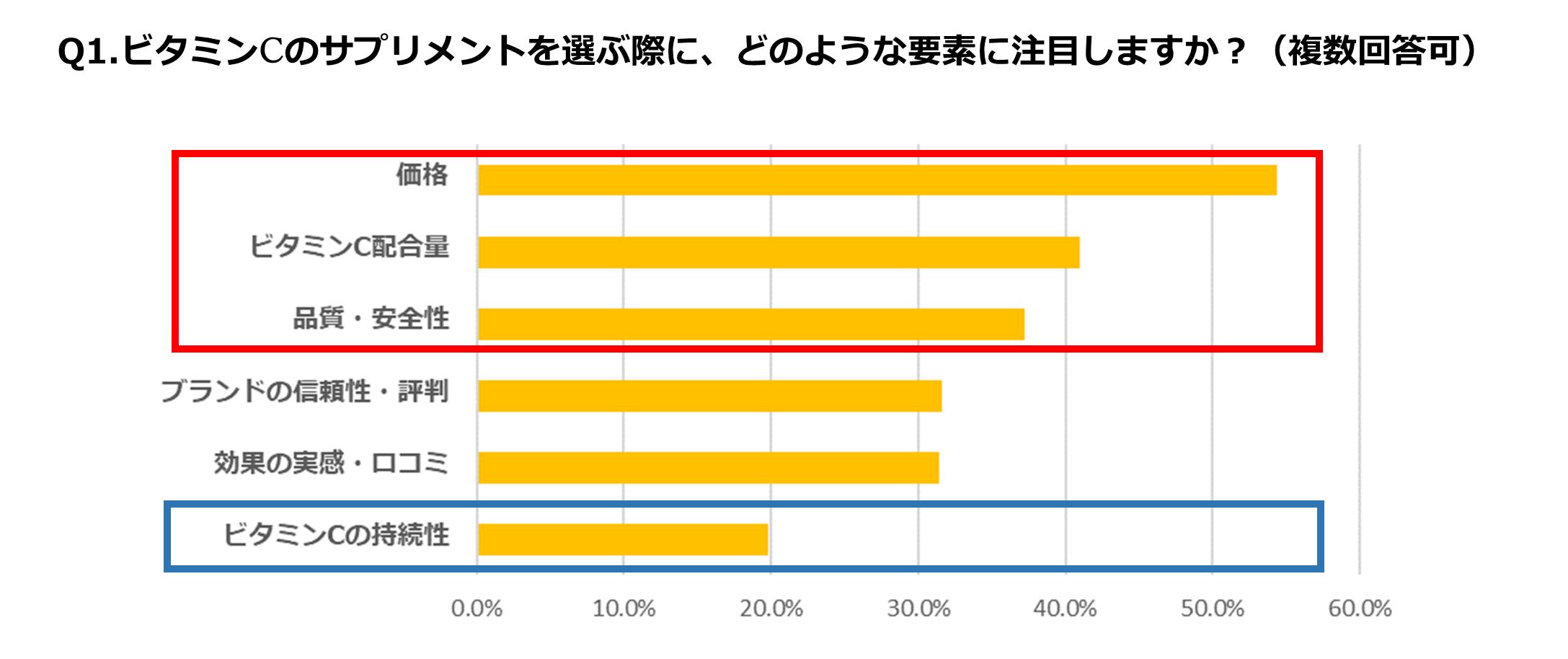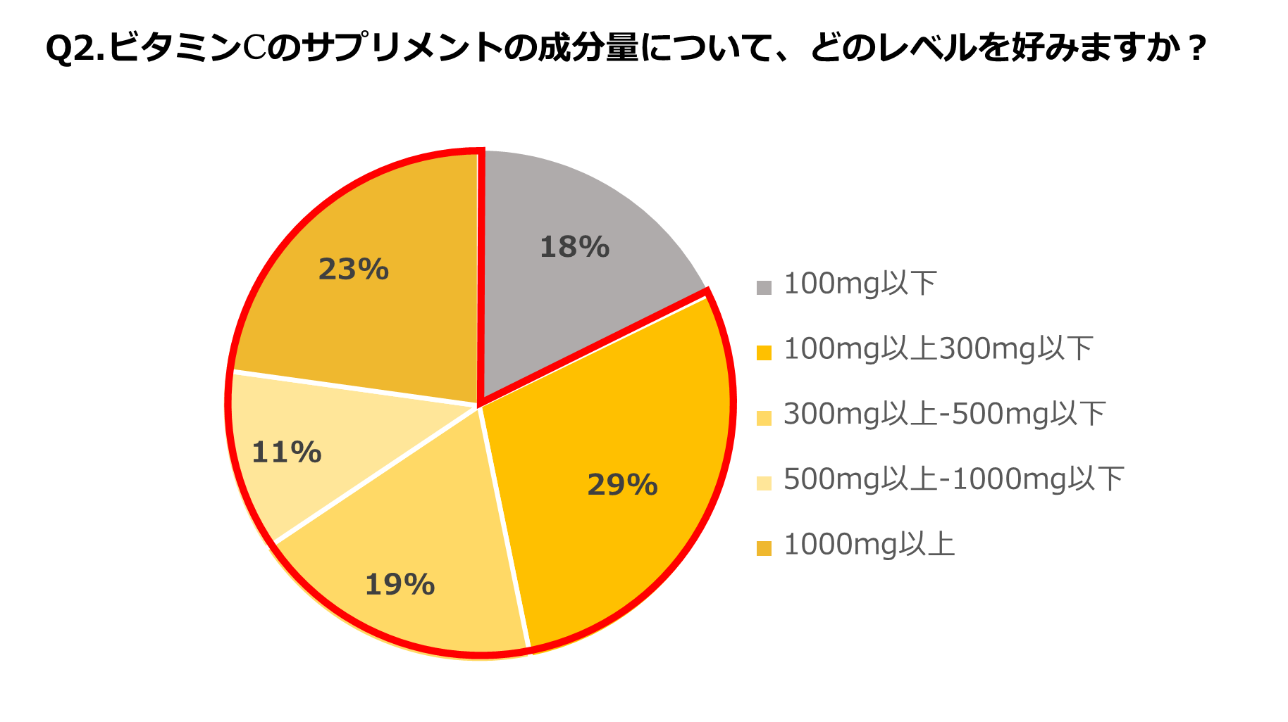 <2023年最新「ビタミンCサプリメントの選び方」に関する意識調査>ビタミンCサプリメント購入時、約4割が「ビタミンCの配合量」を意識 8割の人が100mg以上の配合量を好む結果に