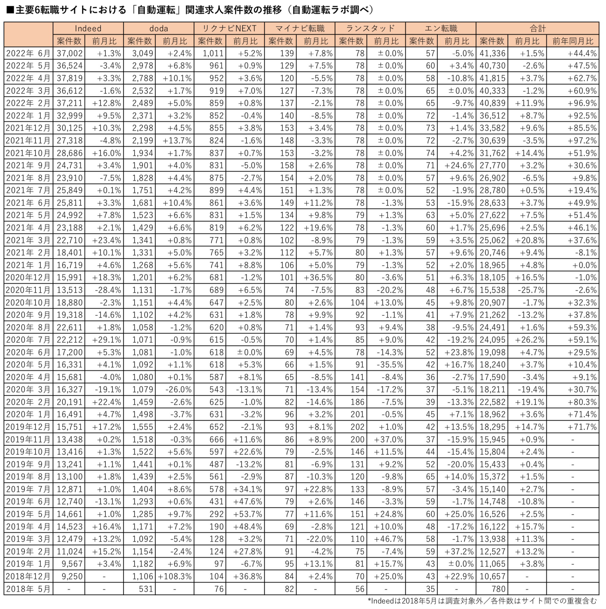 「自動運転」関連求人、前年比44.4%増の41,336件(2022年6月版調査)- 自動運転ラボ