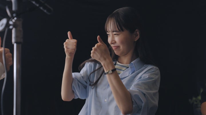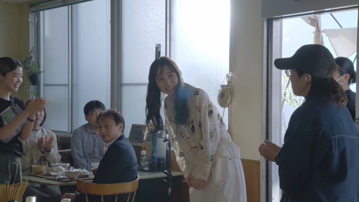 撮影では他にもスタッフや監督と楽しそうに談笑する姿が見られ、終始リラックスした雰囲気で進んでいきました。ギルティーフードを頬張るシーンでは、井桁さん自ら「口いっぱいに頬張ってもいいですか?」と質問して現場に笑いが起きる場面もありました。