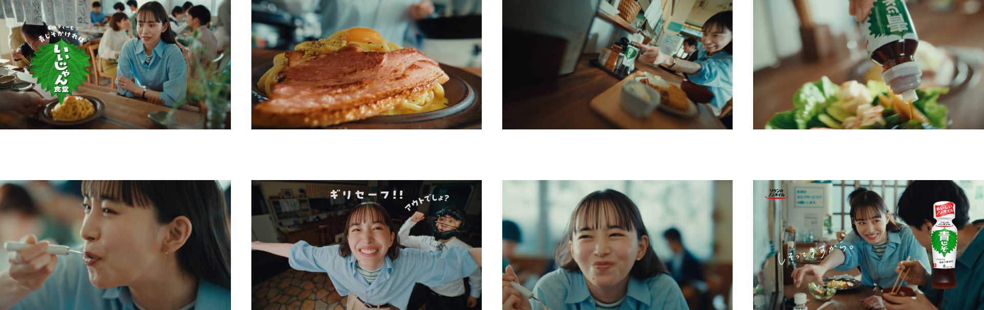 本CMの主役は、定食屋さんでギルティーな料理を食べる井桁さん。『リケンのノンオイル 青じそ』をかけ、ギルティーさも罪悪感もまとめてさっぱりさせながら食べ進めます。食べることを肯定するような「いいじゃんソング」とともに、井桁さんが気持ちの良い食べっぷりを披露します。