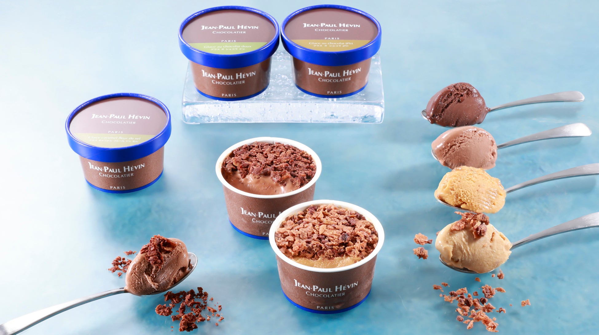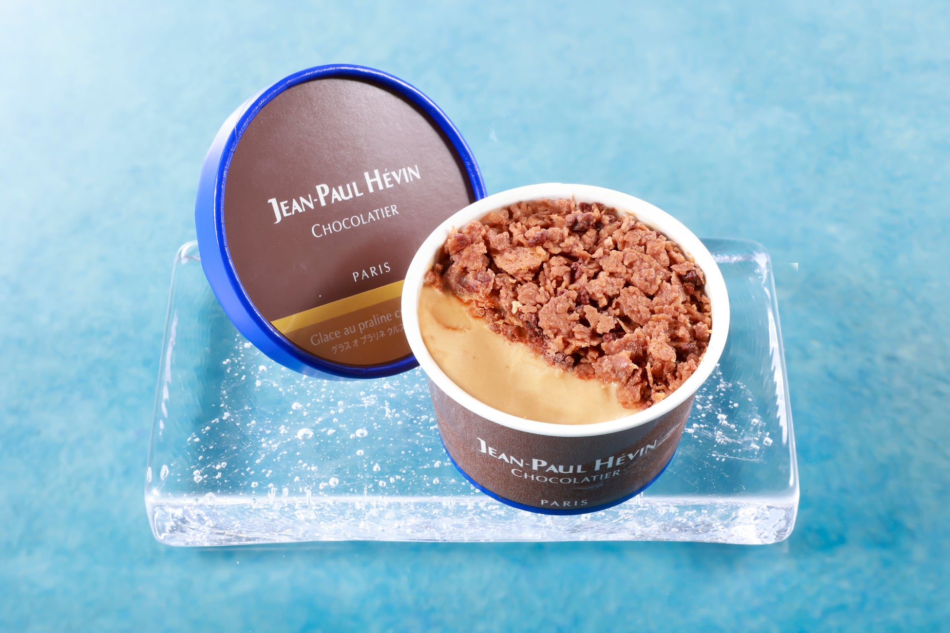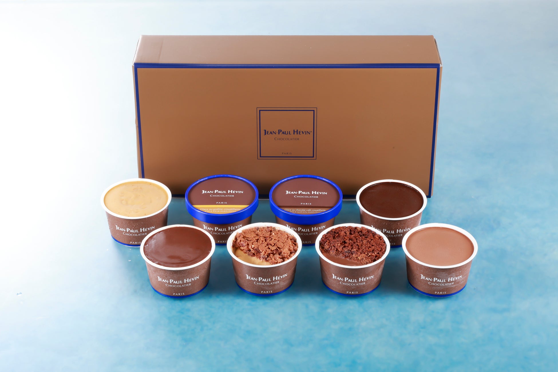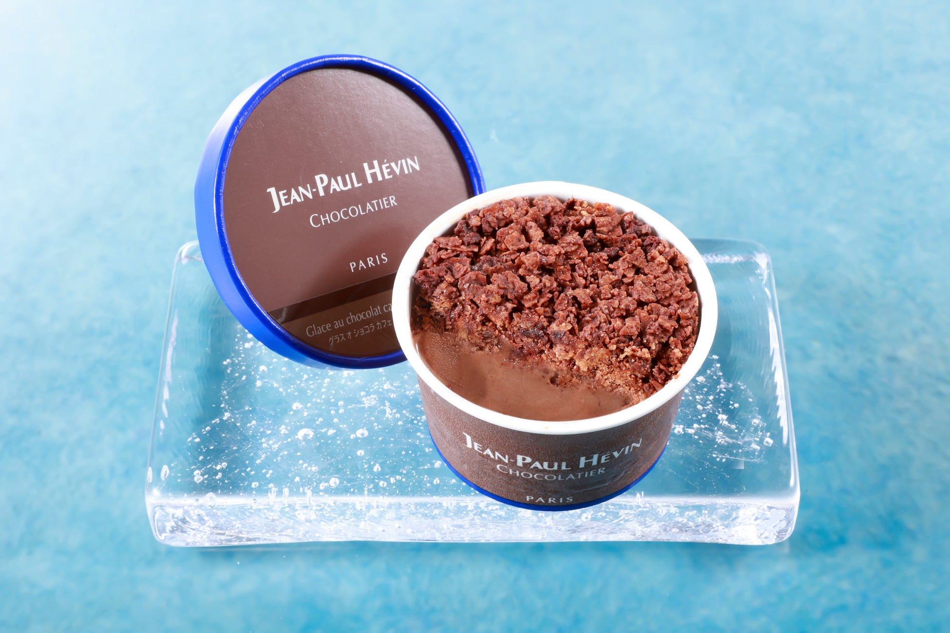 焦がしバターとショコラが香るサクサクとした食感のクルスティヤンに、アイスを合せた2種類の新作「グラス オ ショコラ カフェ クルスティヤントゥ」、「グラス オ プラリネ クルスティヤントゥ」と、ジャン=ポール・エヴァン定番アイスの詰合せ。