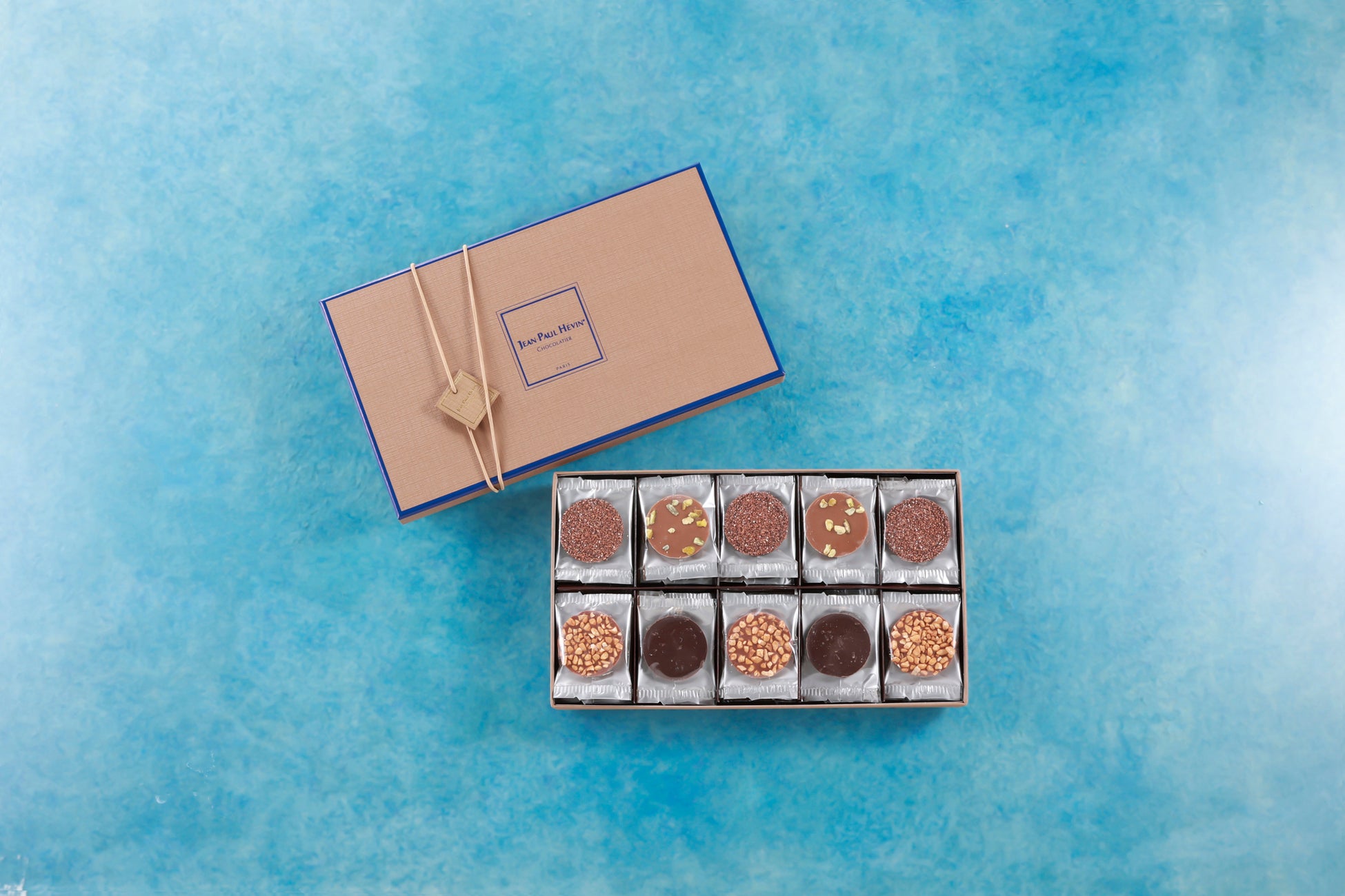 厳選されたカカオの新鮮な香りと味わいが長く愉しめる個包装タイプのショコラ。ピスタチオやアーモンドのトッピングなど4種類のフレーバーを20枚詰合せました。