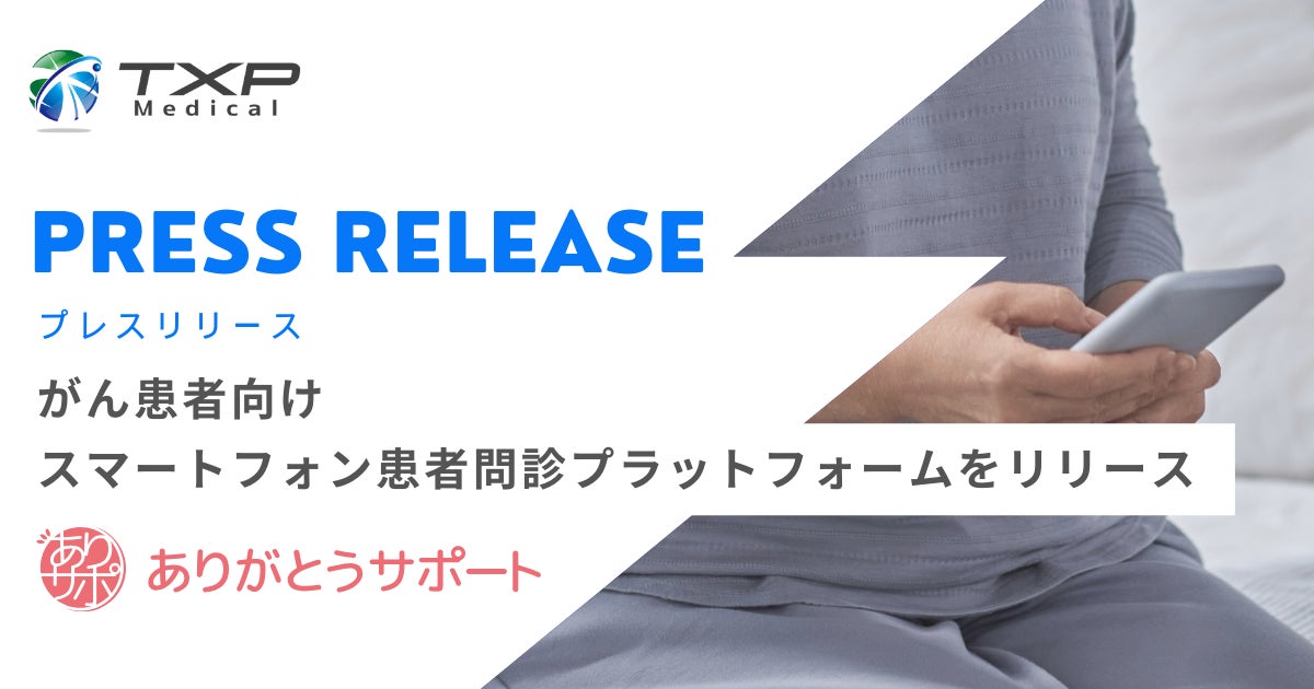 TXP Medical株式会社(代表取締役CEO:園生 智弘、以下TXP Medical)は、がん患者問診プラットフォームであるスマートフォン向けのサービス、「ありがとうサポート(ありサポ)」を開発、リリースしました。本サービスは、内閣府 戦略的イノベーション創造プログラム(SIP)「統合型ヘルスケアシステムの構築」の研究開発活動において、 公益財団法人がん研究会有明病院(以下、がん研有明病院)監修のもと始まったサービスです。がん研有明病院では、2024年7月1日より試験運用を開始しており、この度TXP Medicalは全国のがん診療施設への展開を開始いたしました。