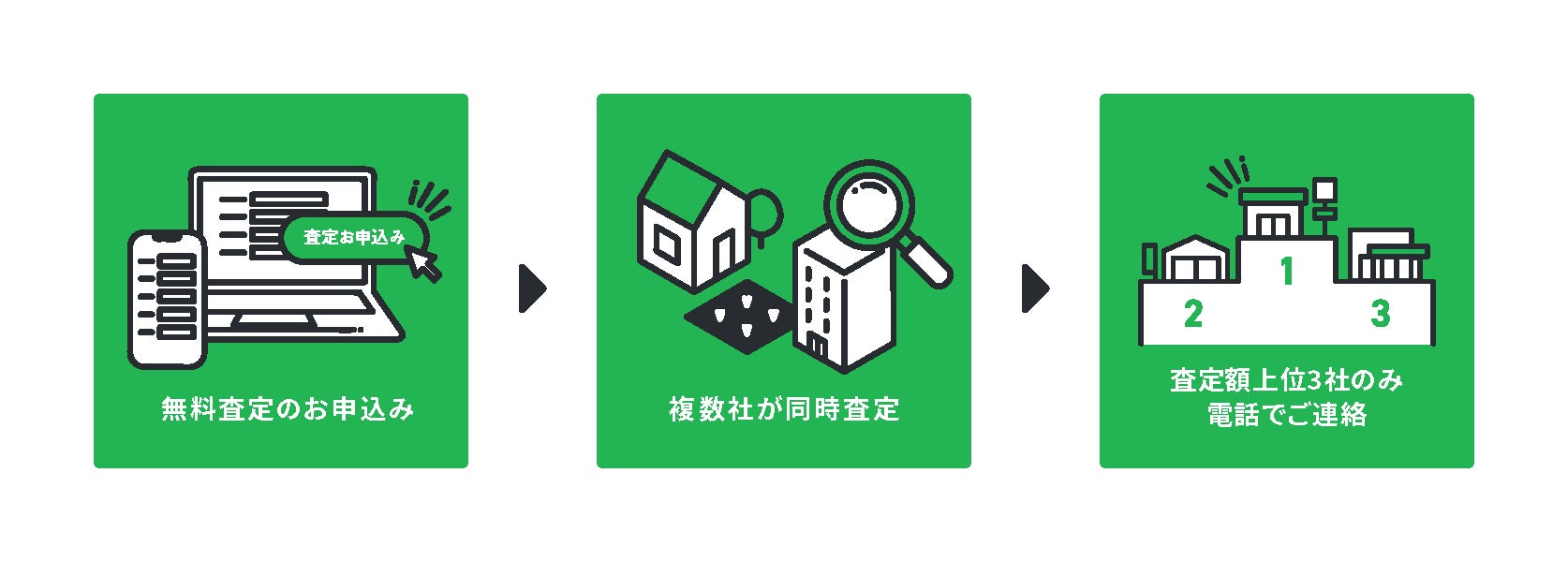 紹介会社を査定額で絞ることにより、従来のサービスで発生していた度重なる営業電話の煩わしさから解放されます。また、申し込み時は物件情報のみで査定額を算出し、個人情報の提供はご紹介する査定額上位最大3社に限定するため、不必要に個人情報を提供する不安も解消されます。