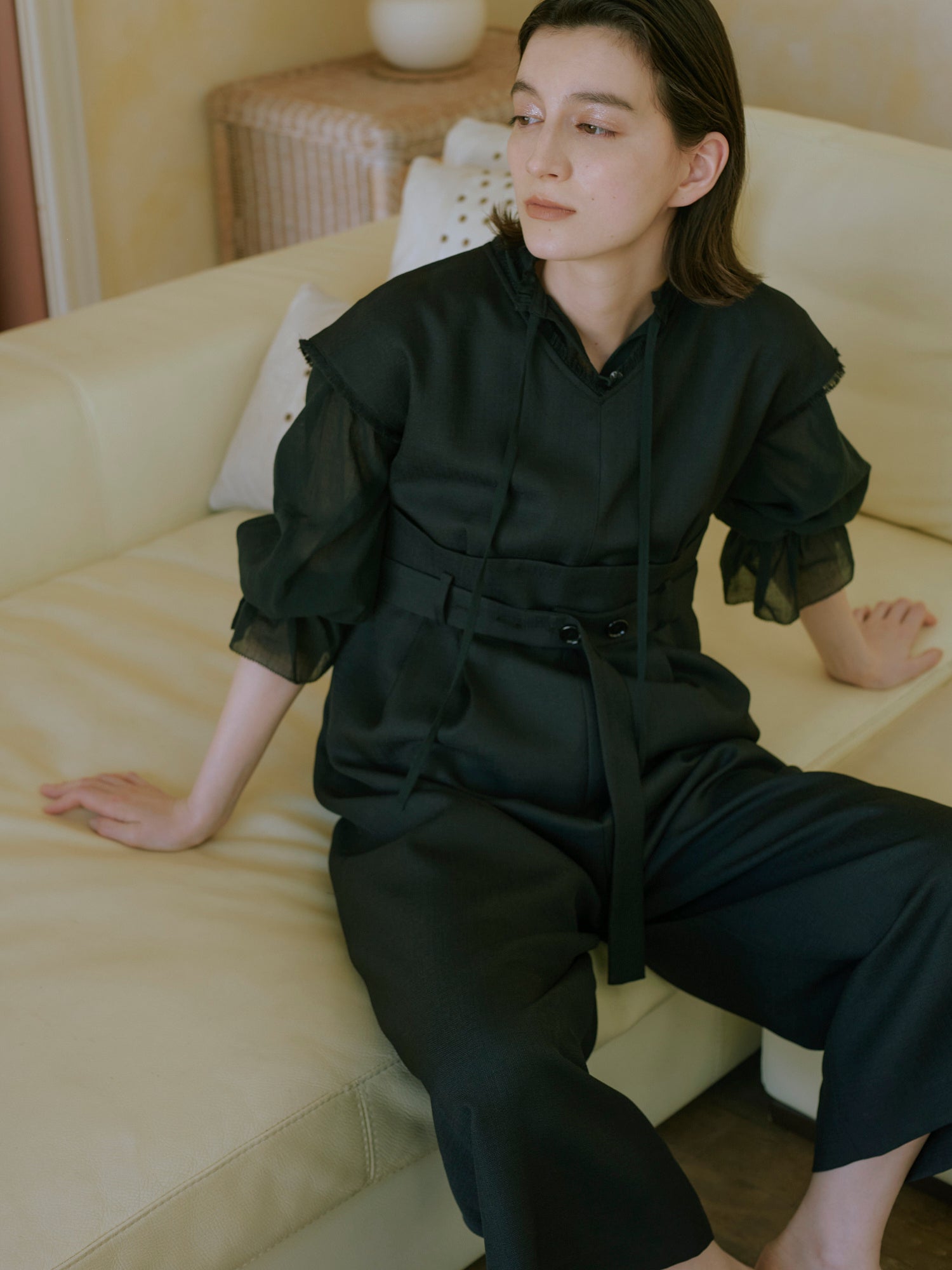 Fringe Neck Linen Like All-in-One -short & regular ¥24,500