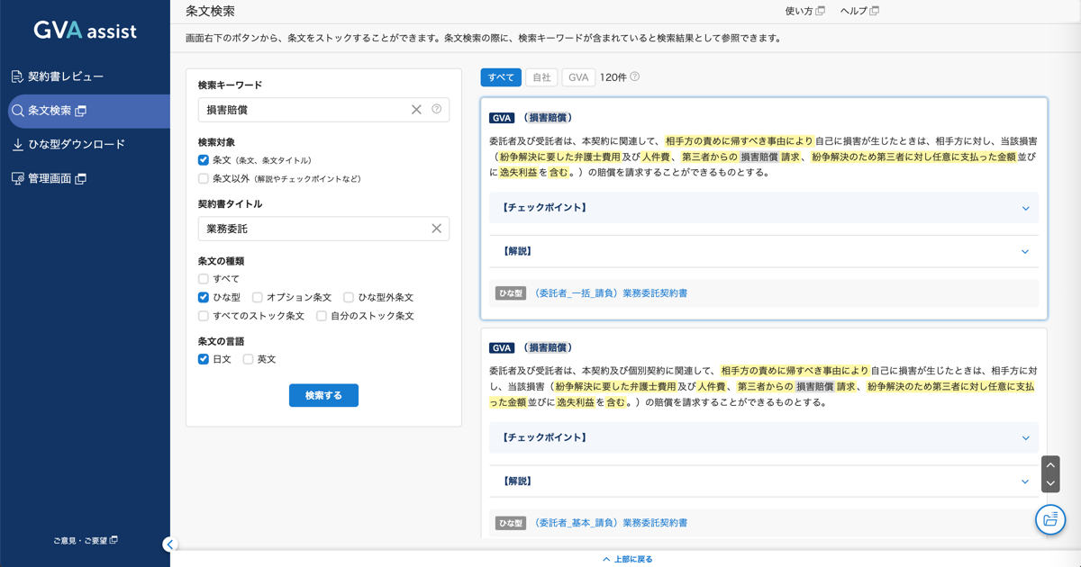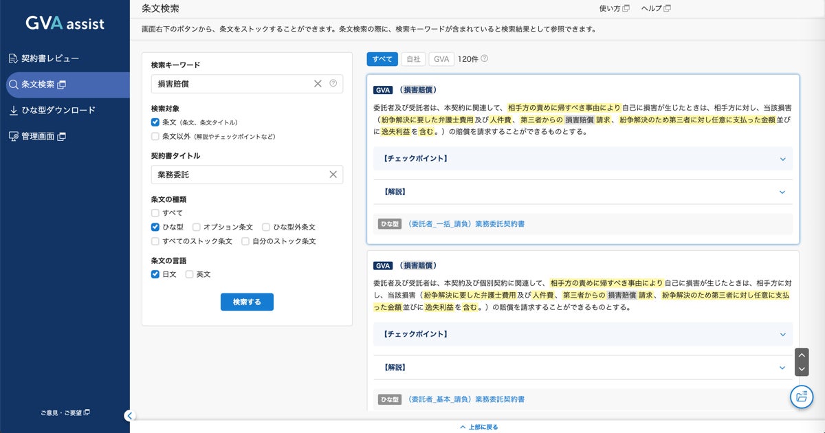 GVA TECH株式会社(本社:東京都渋谷区、代表取締役:山本 俊、以下GVA TECH)は、AI契約審査クラウド「GVA assist」の条文検索機能をリニューアルしたことをお知らせいたします。