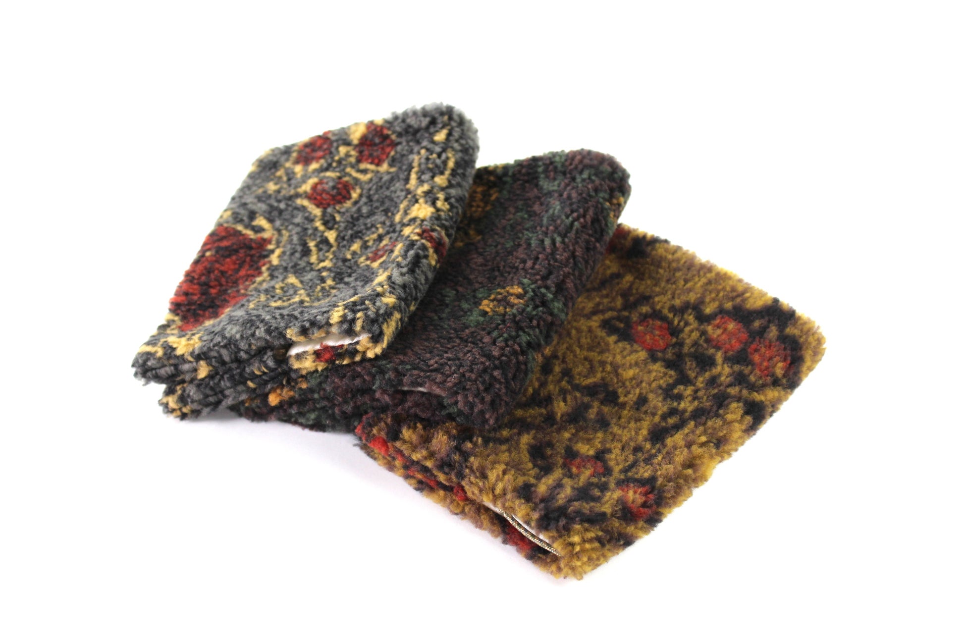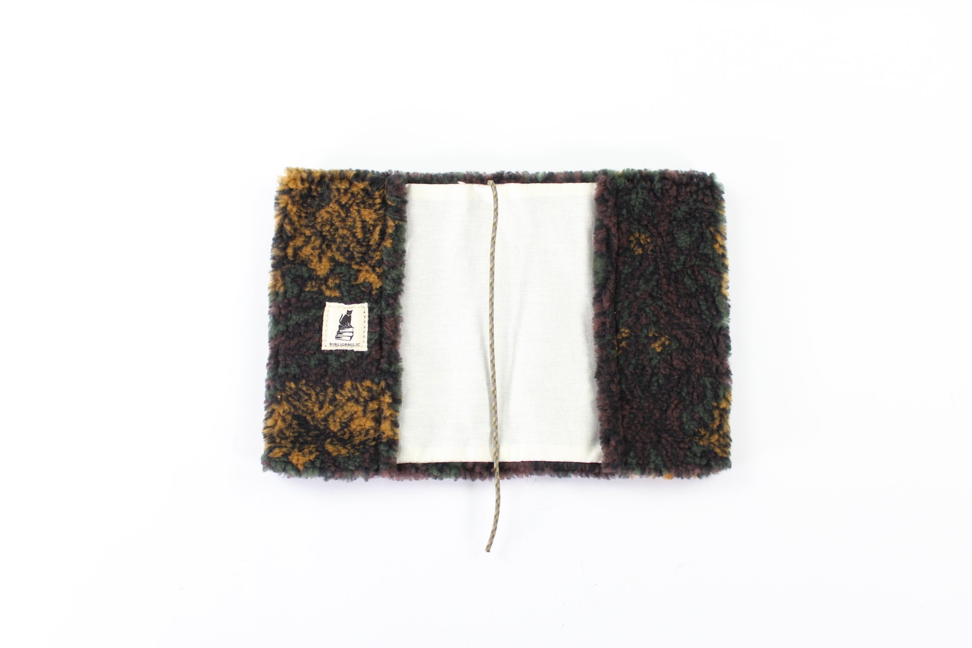 和歌山県にて糸から編みまで、1つの機械で加工しているオリジナルのジャガードボア生地を使用したブックカバーです。糸は回収された使用済みペットボトルを原料とした、「マテリアルリサイクル工程」を経て生産されたポリエステル繊維。ふかふかとした柔らかい手触りと、暖かみのある風合いでとても軽いのが特徴です。