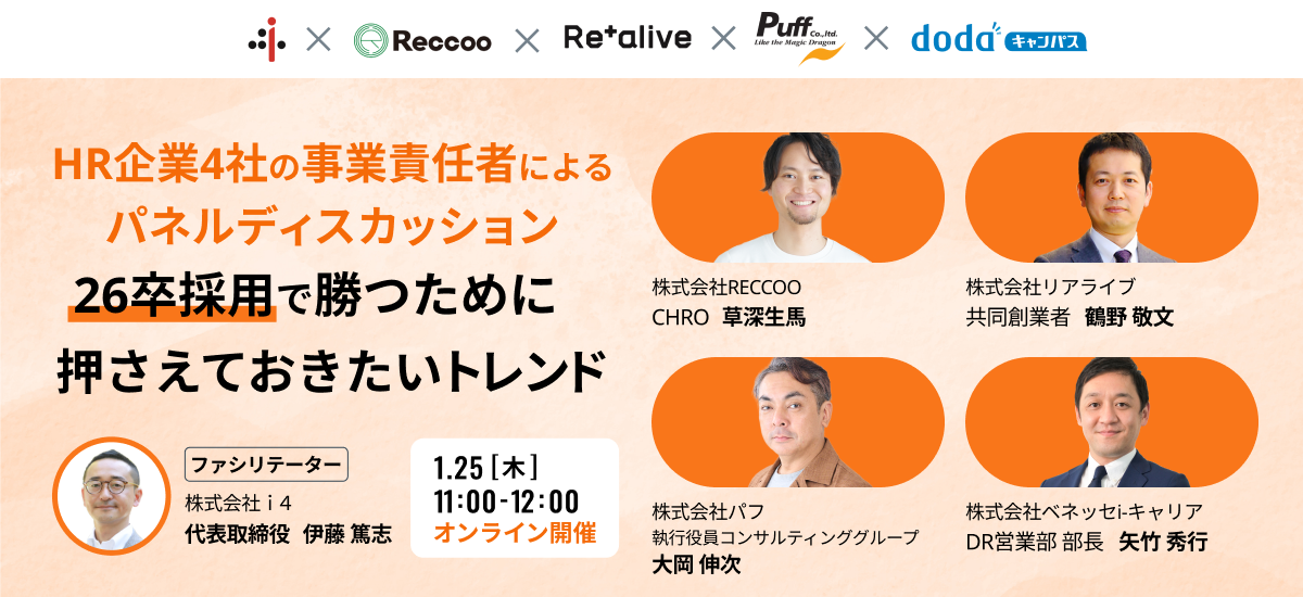 【1/25開催】HR企業4社の事業責任者が登壇「26卒採用で勝つために押さえておきたいトレンド」