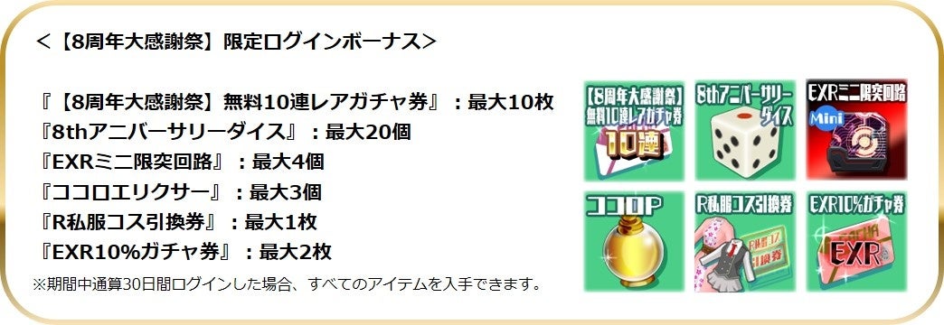 他にも、豪華アイテムをゲットできる《8thアニバーサリーすごろくライト》など、8周年を大いにお楽しみいただけるキャンペーンが盛りだくさんとなっております。