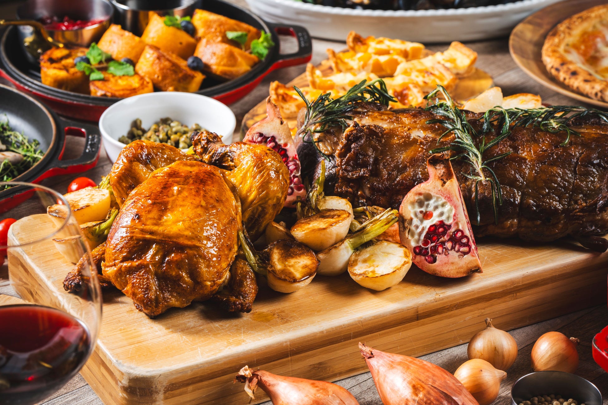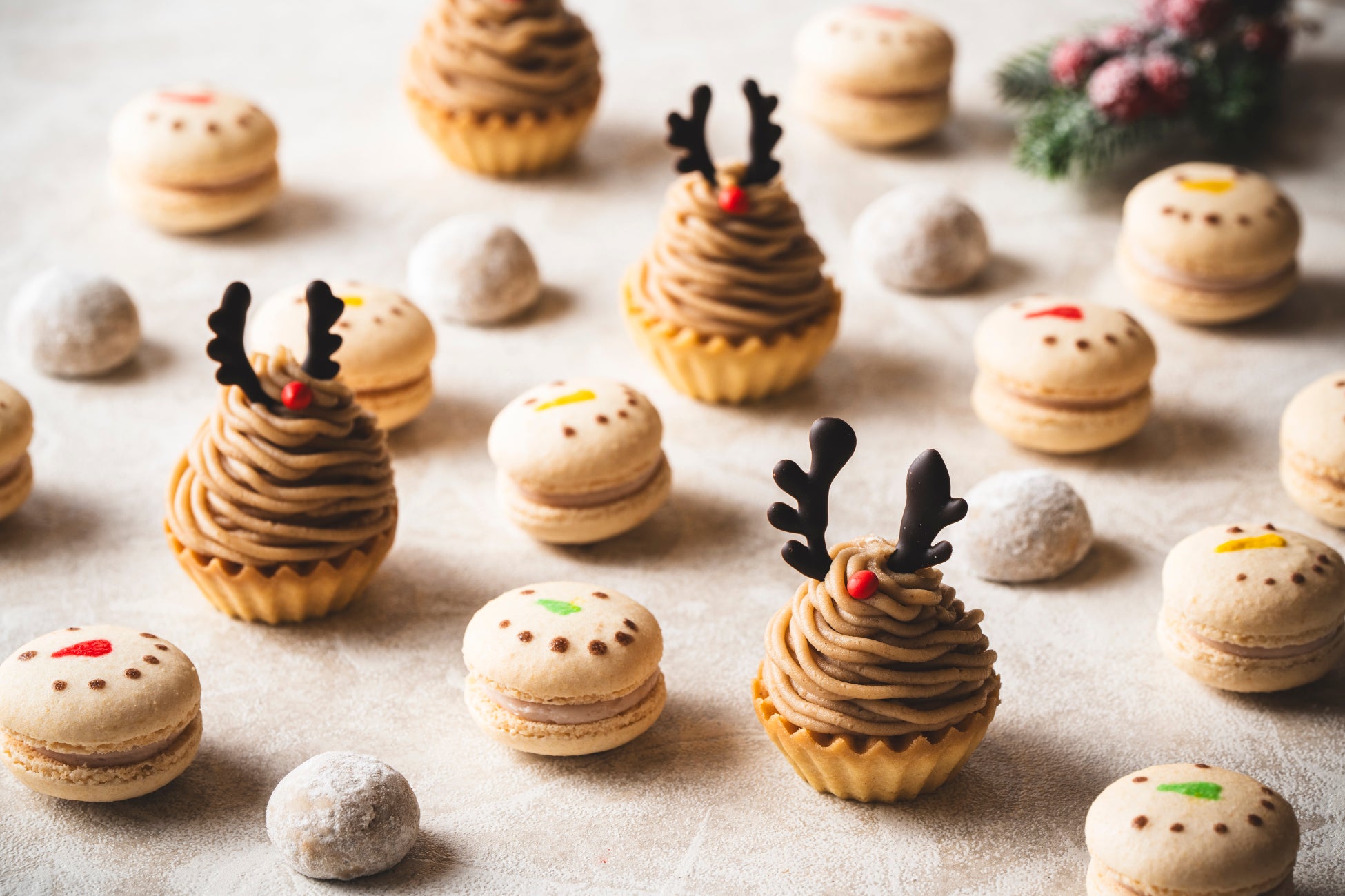 オールデイダイニング セラーレでは、12月21日(土)~1月5日(日)期間中の週末6日間限定で人気の週末ランチビュッフェがフェスティブテーマのスペシャルメニューで登場します。お祝いムードたっぷりのメニューを、ビュッフェスタイルで心ゆくまでお楽しみください。特に、ライブキッチンで提供される豪華なお肉料理は見逃せません。また、クリスマスシーズンにぴったりの、表情豊かな可愛らしいスイーツがデザートコーナーに並びます。お食事の締めくくりには、ティータイムを楽しみながら、甘いスイーツで至福のひとときをお過ごしください。