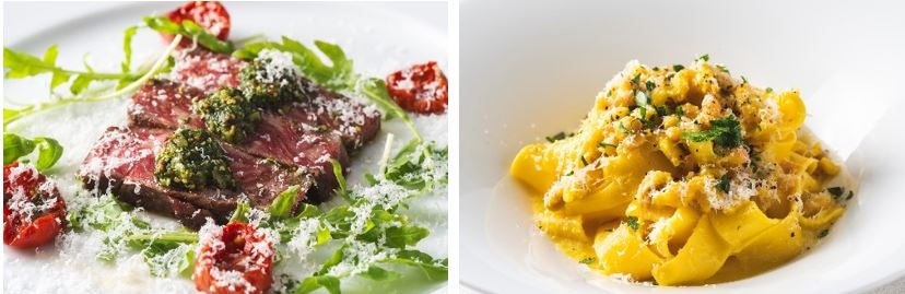 沖縄をはじめ全国各地の厳選食材を使った本格的なイタリアンを提供する「クッチーナ セラーレ」では、見た目も鮮やかな5品のフルコースをご用意しております。前菜には、美しく盛り付けられた良質な豚ロースや肉厚な鮪、帆立を使用し、ディナーの幕開けを華やかに彩ります。パスタとメインディッシュには、「クッチーナ セラーレ」自慢のシグネチャーメニューを取り入れ、沖縄にいながら本格的なイタリアンを存分にご堪能いただけます。カップルはもちろん、ご家族で集う場に、ライブキッチンで次々と料理を仕上げるシェフたちの笑顔とともに、楽しいひとときをお過ごしください。