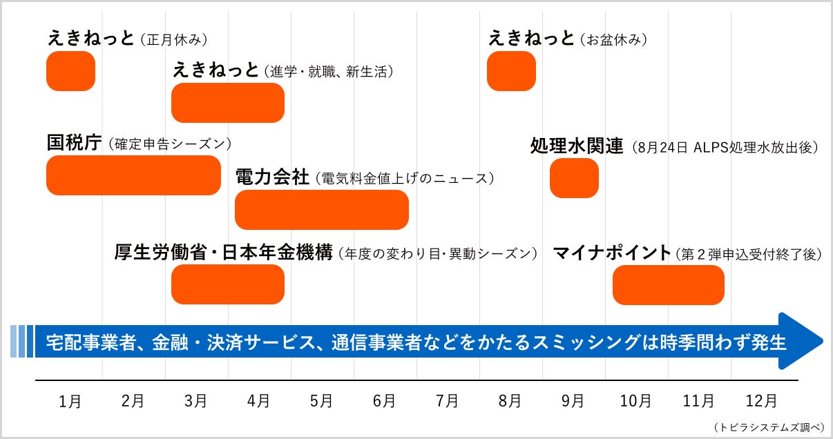 ■カレンダーで振り返るスミッシング2023、帰省ラッシュや「処理水」便乗も