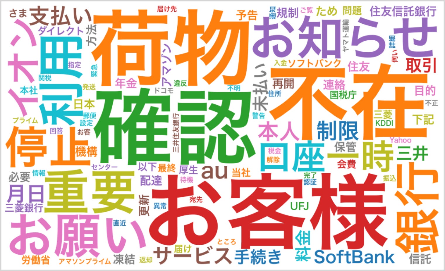 トレンドワードは「荷物」「不在」「銀行」「口座」など、宅配・金融関連が目立つ