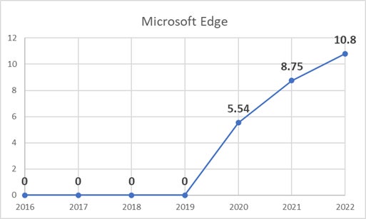 ■世界のPCにおけるMicrosoft Edgeシェア 2016年~2022年