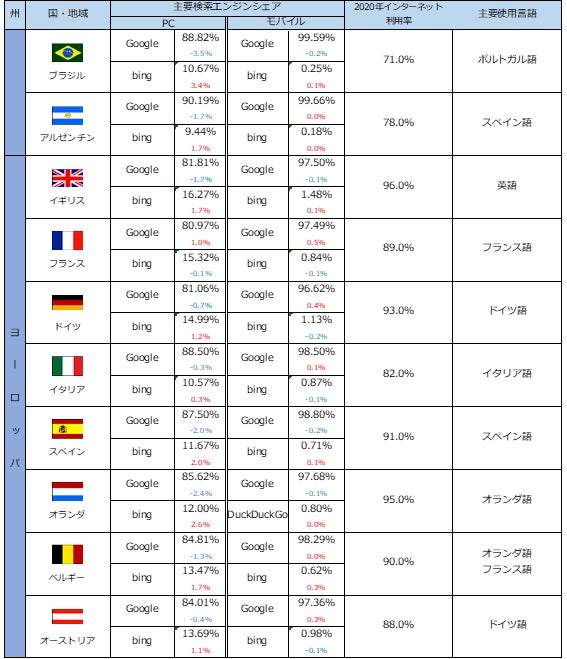 世界40カ国、主要検索エンジンシェア【PC、モバイル】
