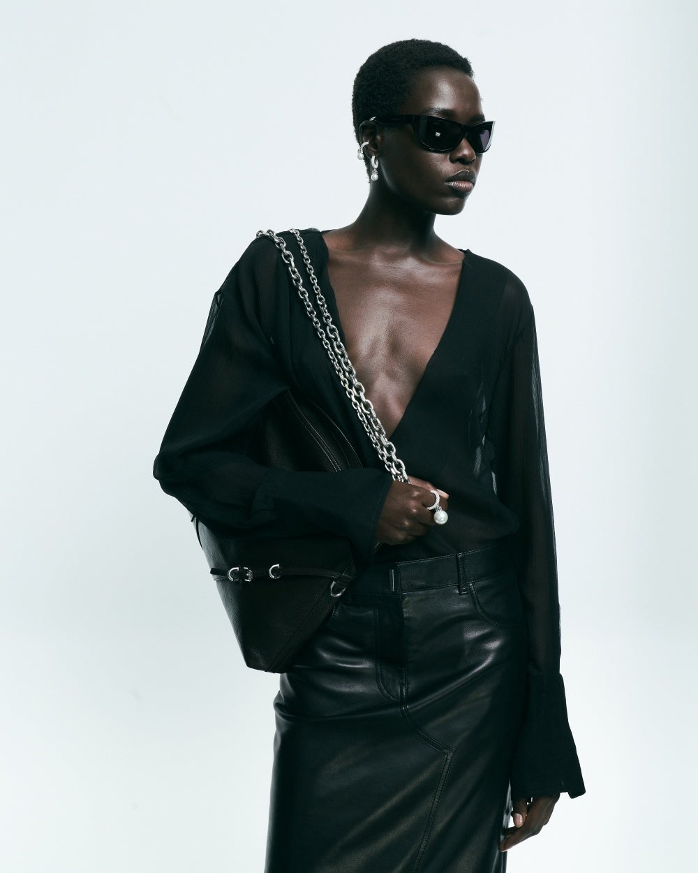 オリジナルの『ヴォワイユー』のアティテュード、アイコニックな「V」シェイプ、ゆったりとしたプロポーションはそのままに、『ヴォワイユー チェーン』は独自の個性を表現しています。クラシックなタンブルレザーや、デニム、メタリックなラミネートレザーといった素材の質感と風合いを際立たせながら、繊細なハードウェアとさりげなくスリムになったディテールがエレガントな雰囲気を醸し出しています。