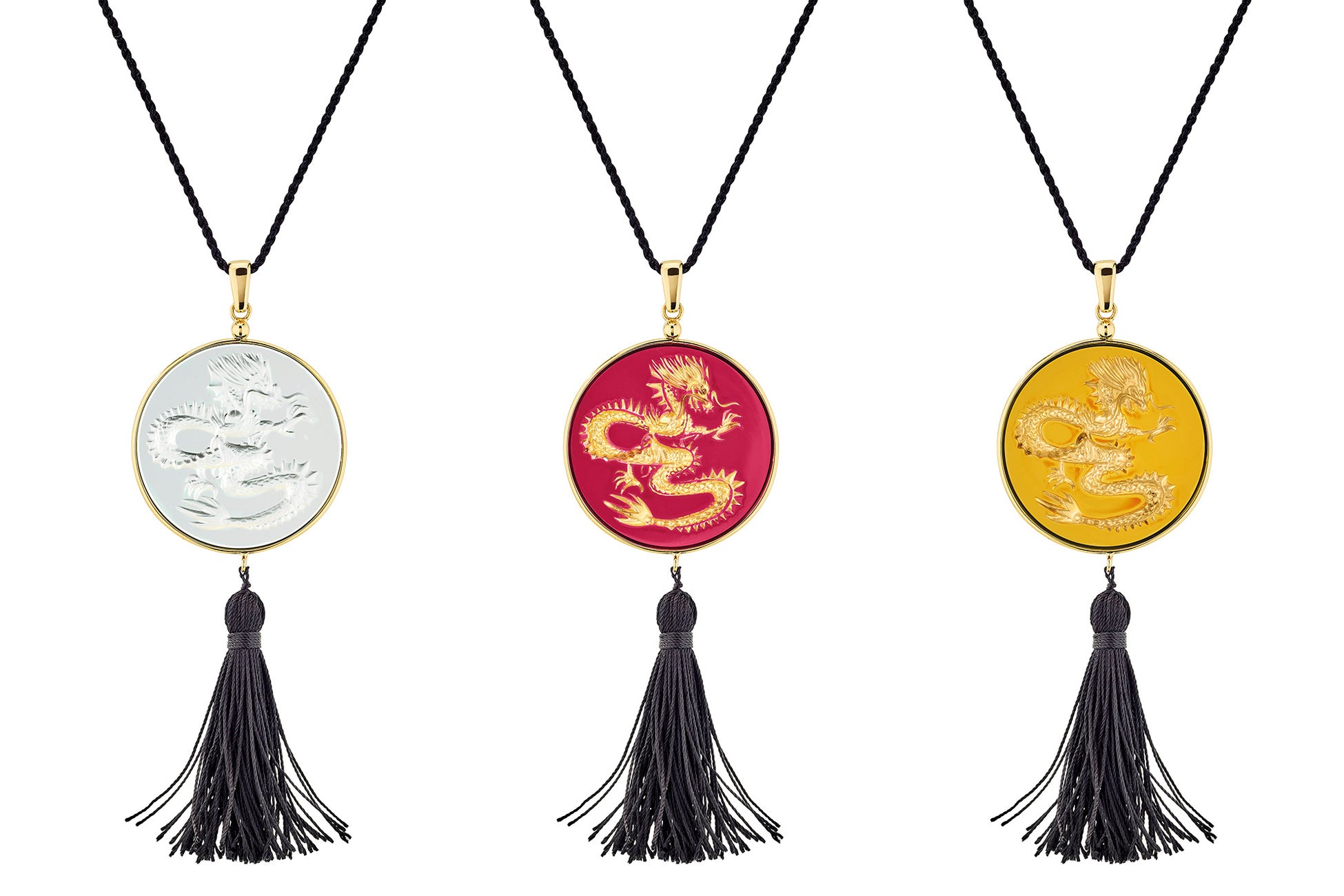 《ドラゴン ティエンロン》ペンダントはドラゴンのモチーフが繊細に浮かび上がります。クリスタルのプレシャスな佇まいと、柔らかなタッセルのコンビネーションがエレガントな装いを完成させます。カラーは純粋な「クリア」、気品あふれる「レッド / ゴールド」と「アンバー / ゴールド」が揃い、新年のスタートを鮮やかに彩ります。