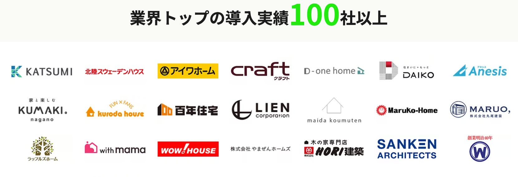 業界トップクラスの住宅メーカーを含む100社以上の企業に導入いただいており、顧客満足度は96%を達成しています。(2025年3月現在)