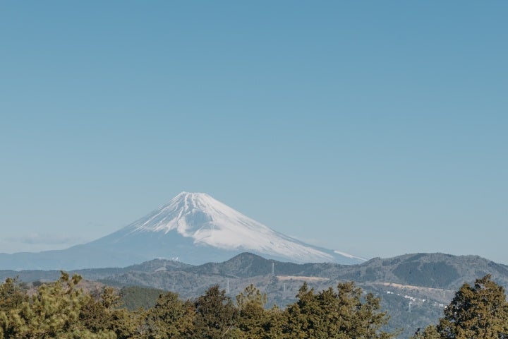 全室オーシャンビューの部屋から見られる海と、すぐ隣にある「大室山」。緑あふれる自然と目の前に広がる海は、最高のロケーションです。