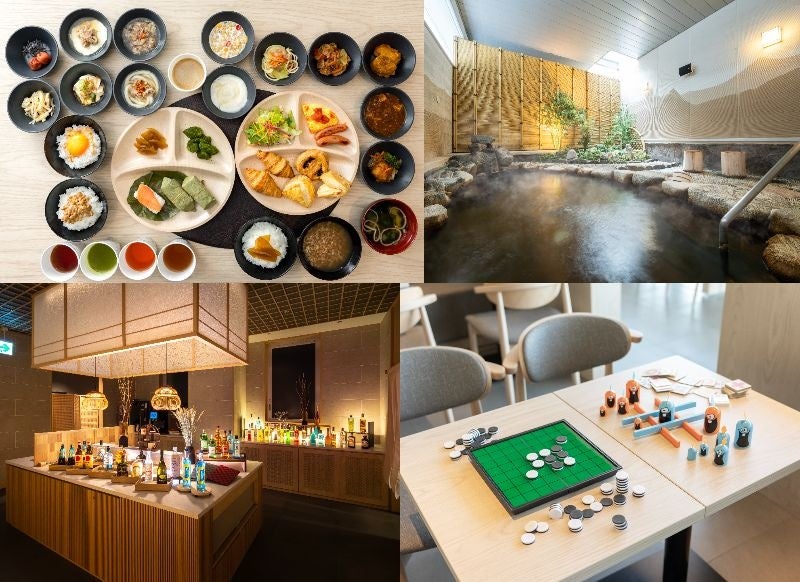 ご滞在中には、館内にある天然温泉で心身を癒していただき、日々の疲れをリセットしていただけます。また、ウェルカムバーでは各種ドリンクと共にボードゲームをご用意しており、親子でリラックスした時間を過ごせる貴重な時間を創出します。