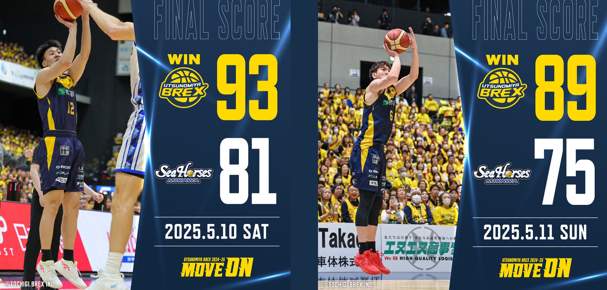 宇都宮ブレックスは、2025年5月10日(土)と5月11日(日)に日環アリーナ栃木でシーホース三河と対戦し、セミファイナル進出を決めました。