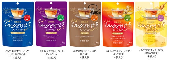 この秋新たに3品の新商品を発売し、シリーズ5品になった「ミルクとけだすティーバッグ」。