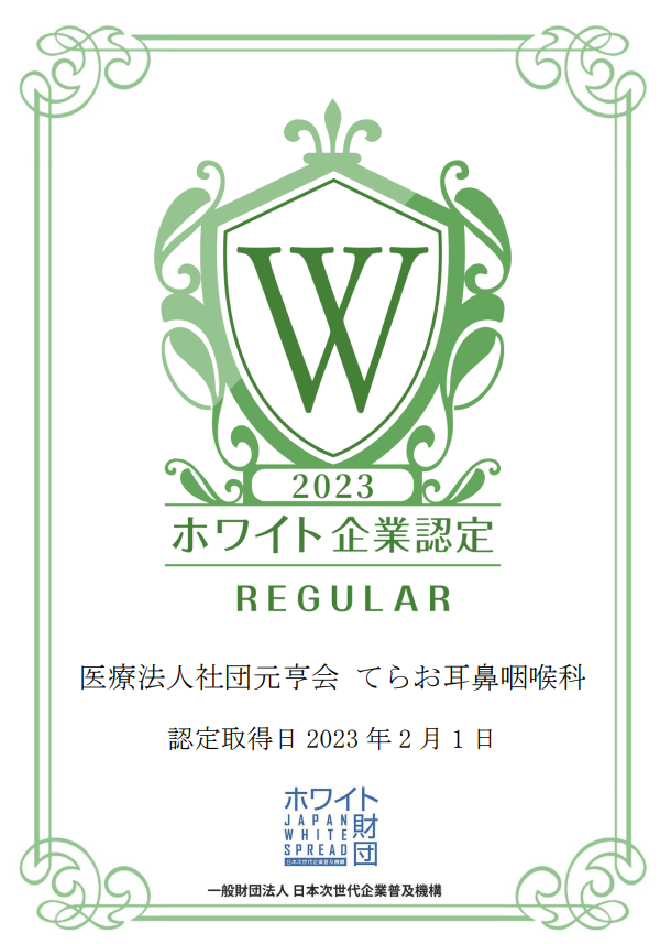 てらお耳鼻咽喉科は2023年2月1日に「ホワイト企業認定 レギュラー」を取得されました!