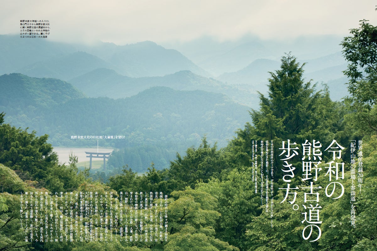 写真家・上田優紀さんが見つけたニッポンの絶景、世界遺産登録20周年を迎える熊野古道での聖地巡礼旅、島国ならではの自然資源を生かした高知旅、土地の文化を味わうガストロノミー……、この夏訪れたい旅先を収録しています。